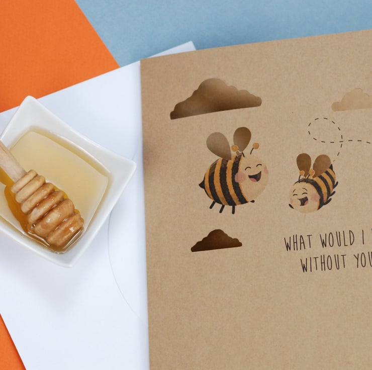 The front features the message "What would I BEE without you?" and can be personalised with your own message of thanks on the inside.