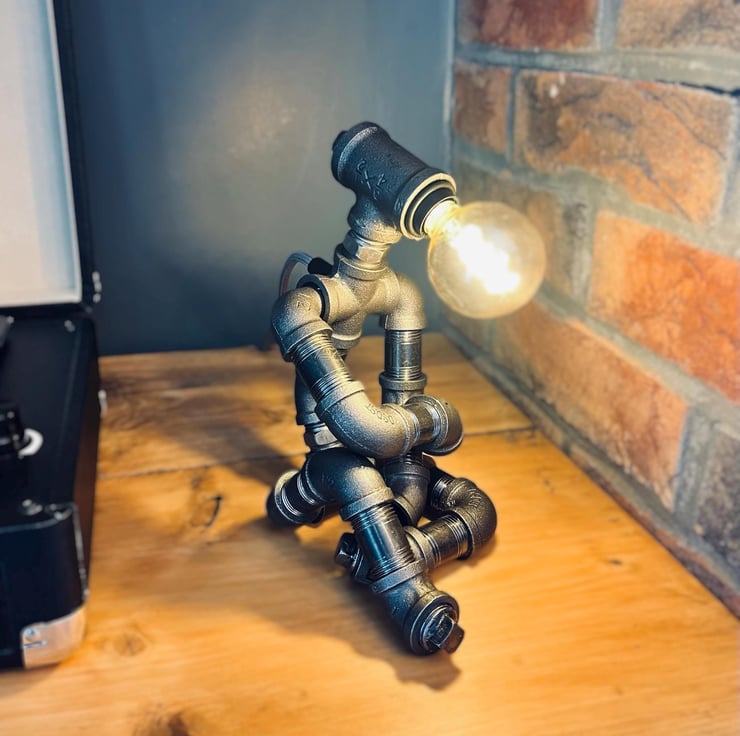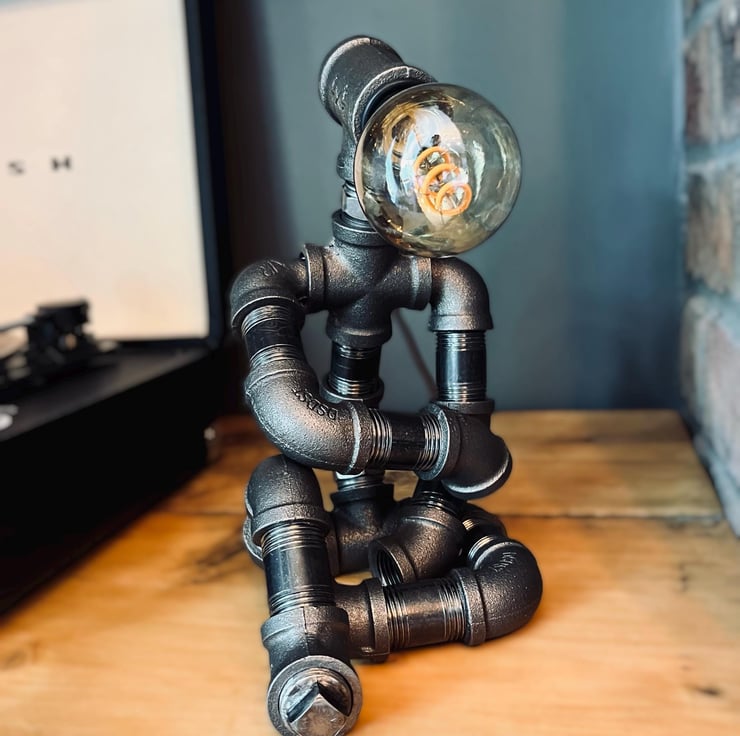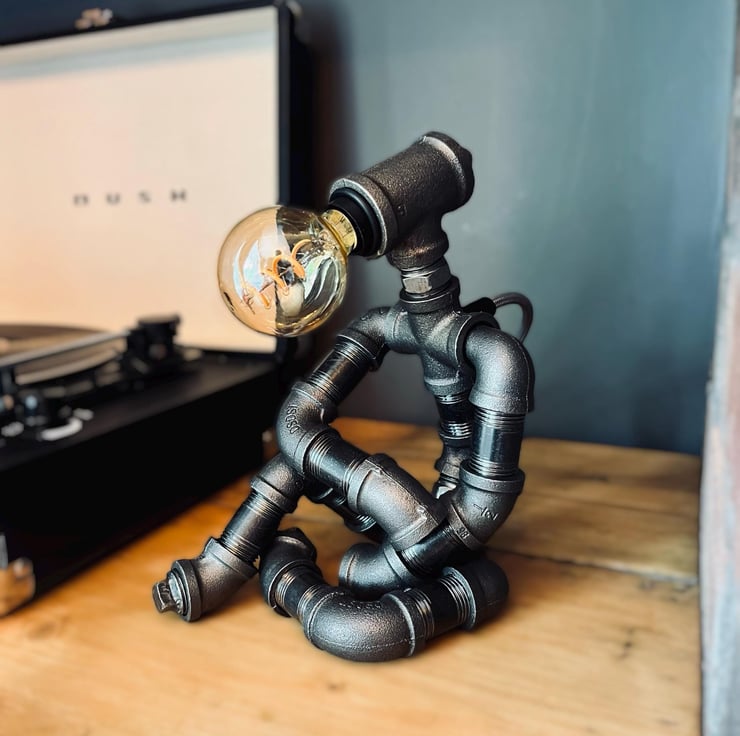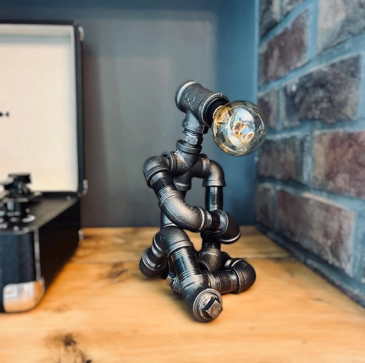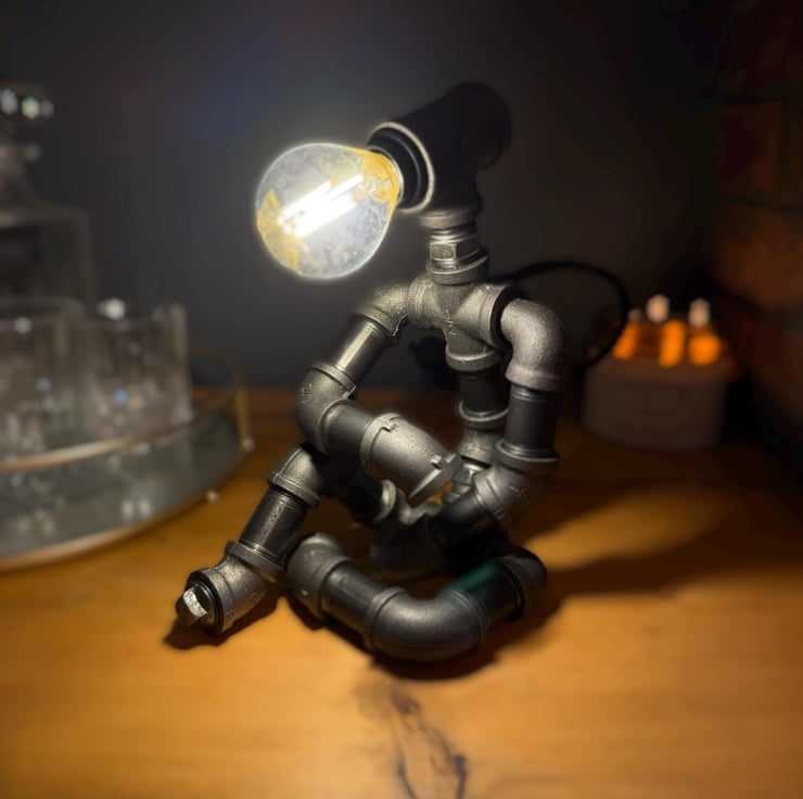Take your home decor to the next level with the bestselling Thinking Man Lamp. Made from sturdy iron pipe fittings and featuring a unique industrial design, this lamp is both functional and stylish, it's a true conversation starter.