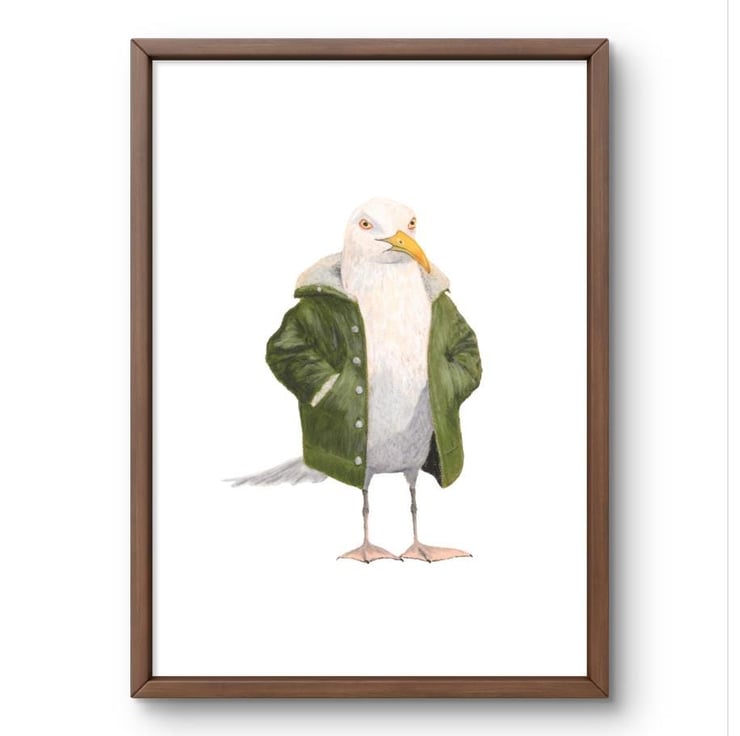 This seagull was hand-drawn by me using pastel pencils on Pastelmat paper. I print this image myself using a best in-class, 10-ink fine art printer, and use high-quality paper or canvas depending on the size you order. It's perfect for adding a bit of coastal fun to your walls, and makes a great gift for friends and loved ones. It's also great as a sign for the men's toilets in a dining establishment!