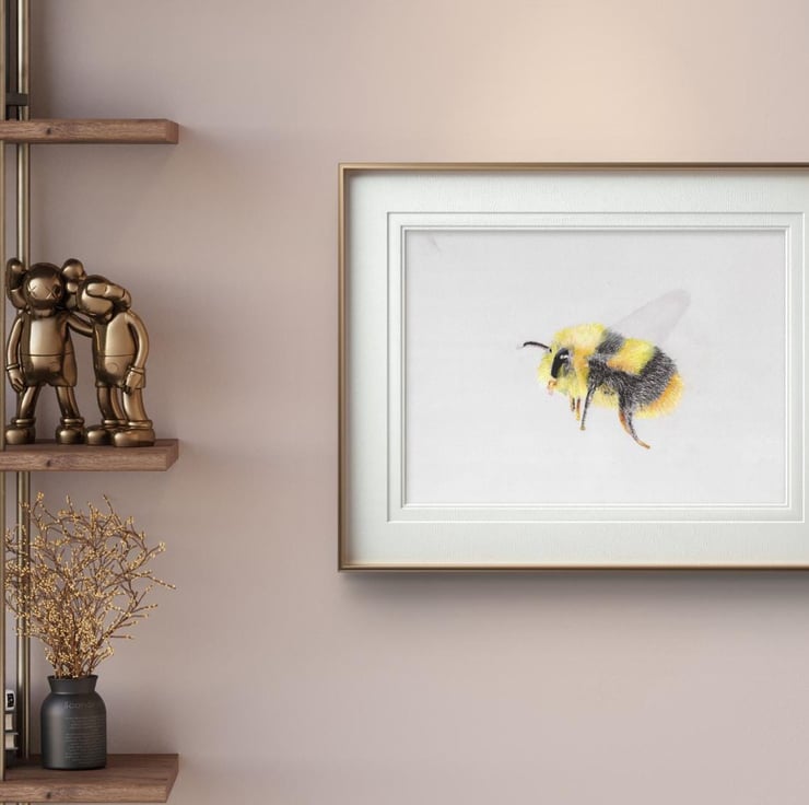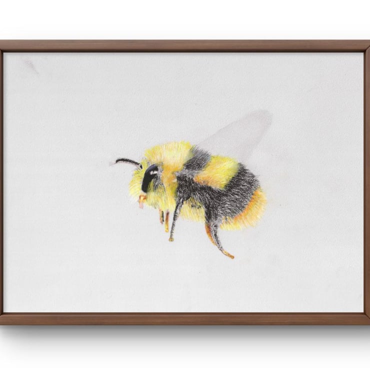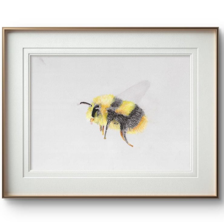 This cute bumble bee was hand-drawn by me using pastel pencils on Pastelmat paper. I print this image myself using a best in-class, 10-ink fine art printer, and use high-quality paper for my prints. It's perfect for adding a splash of colour to your walls, and makes a great gift for friends and loved ones. A great little print for nature and bee lovers, if you've got a little space on your wall that needs filling! It comes in 10 x 8 inches with no border.