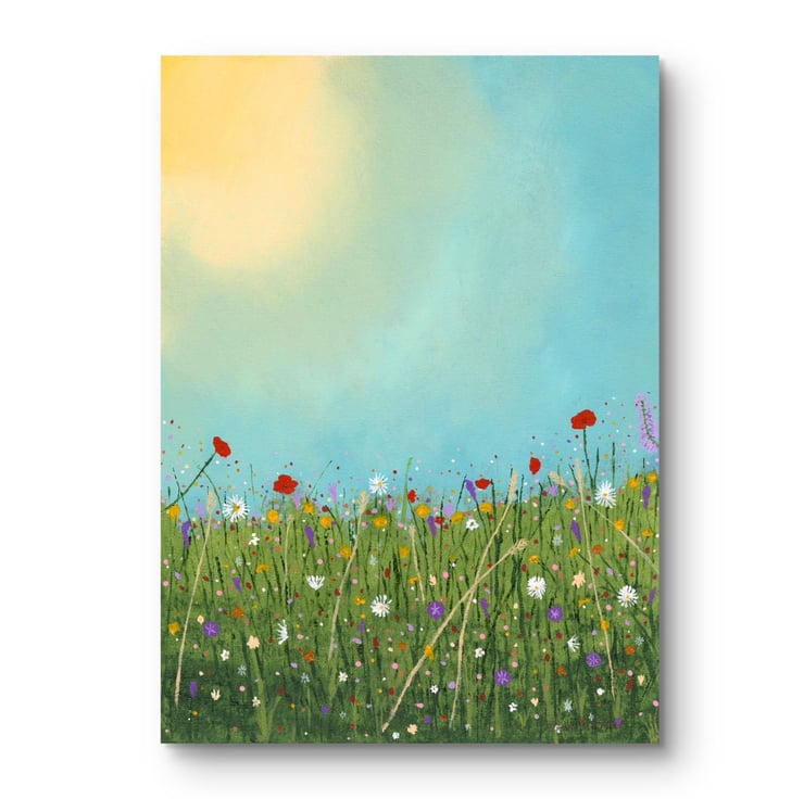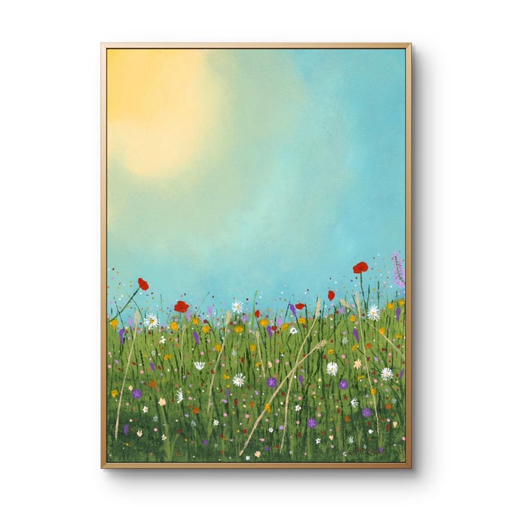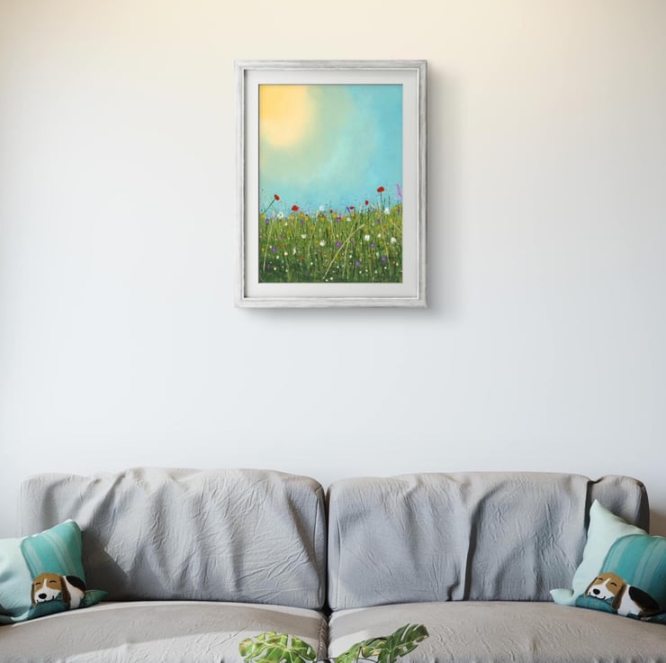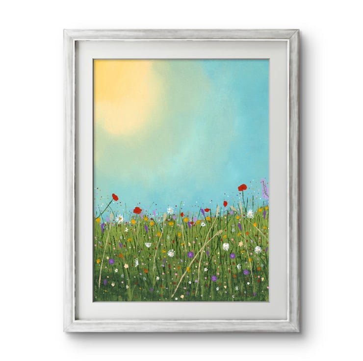 This sunny summer's day flower meadow print was painted by me using acrylic paints on canvas. This light, fresh feeling and uplifting print will add a nice summery and bright touch to your walls in any room of your house.