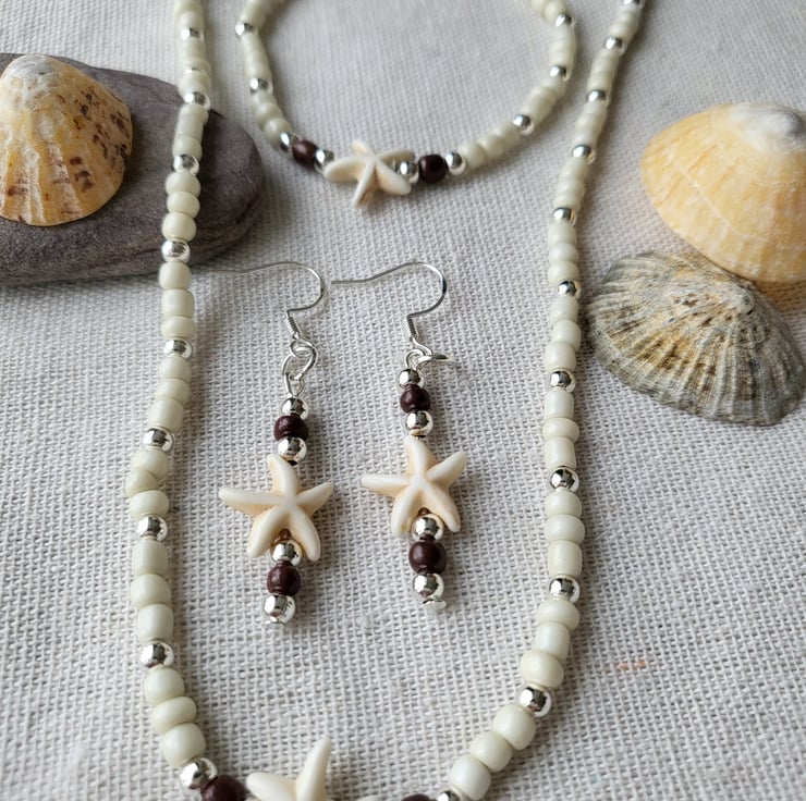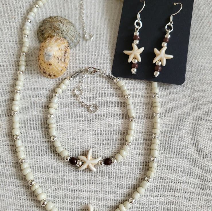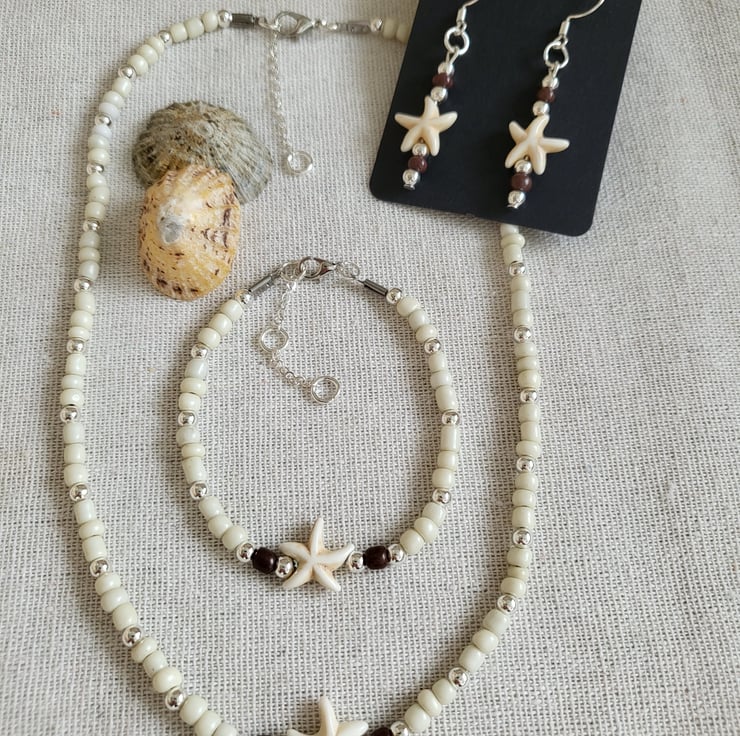 Natural Starfish beaded Jewellery Set, made with Silver plated beads and natural stone charm is the perfect summer accessory.