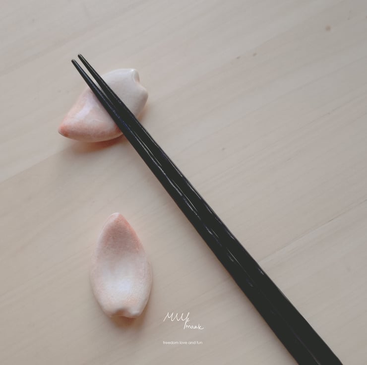 These charming, handmade ceramic chopstick rests, shaped like gently fallen sakura petals are just the ticket! They're a sweet little keepsake that's actually useful – perfect for adding a touch of springtime elegance to any meal.