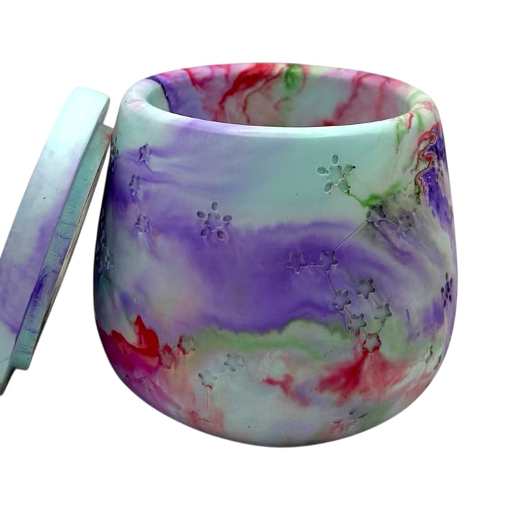 Crafted from premium British plaster known as Crystacast, this gorgeous trinket pot boasts a smooth, luxurious finish similar to marble. Its satisfying weight feels terrific in your hands. It’s perfect for storing your beloved keepsakes, trinkets, jewellery, or even small treasures you hold dear. Plus, it doubles as an elegant candle jar for tealights or small pillar candles, with the lid serving as a chic coaster to protect your surfaces from heat!