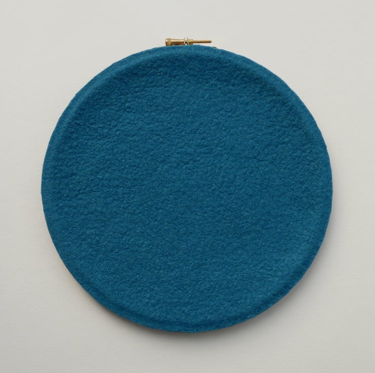 Materials: Wooden hoop, fabric, felt, glue, cord, cotton thread, and acrylic paints.