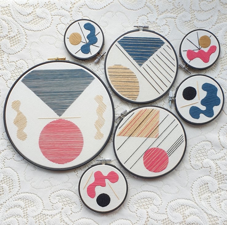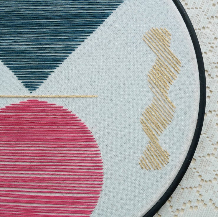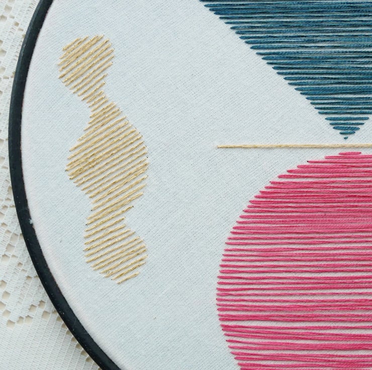 Pink Sunrise - Original Abstract Embroidery Art Piece