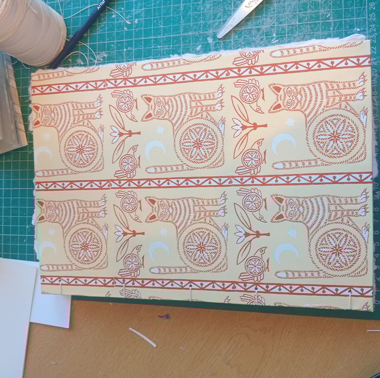 Sketchbook A4 Cotton rag watercolour open spine coptic with cat blockprint cover