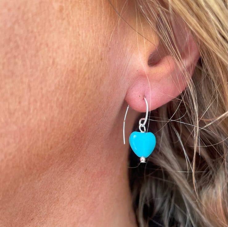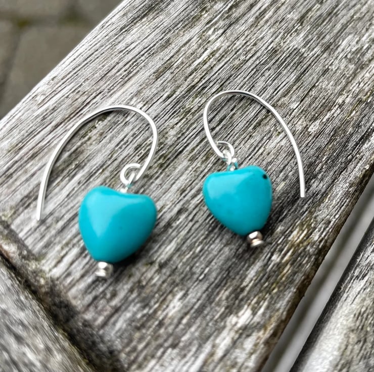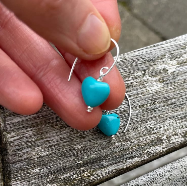 Sterling silver earwires with turquoise gemstone hearts. . Simply elegant. Free gift box tied with ribbon. I also make these in a 14k gold filled option, in my folksy shop.