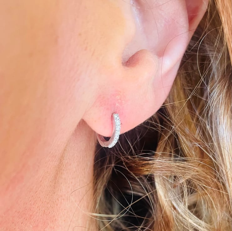 Pretty solid 9ct white gold Cz Huggies,