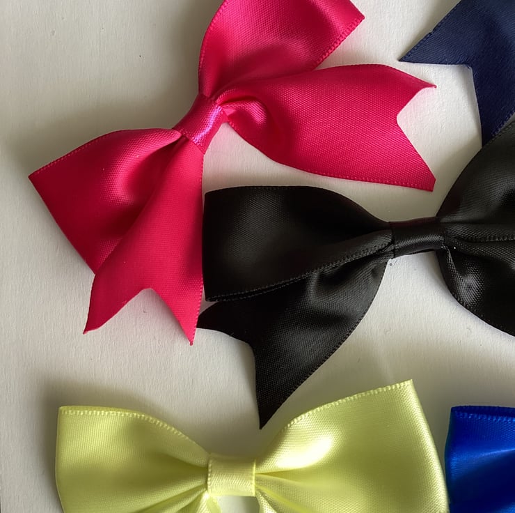 Single satin tied ribbon bows for a variety of uses crafts, gift wrapping, hair bows in 5 colour choices