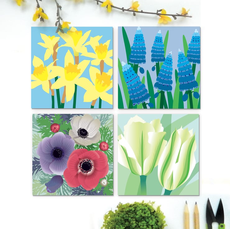 Four cards featuring Spring! Flowers which shout out in bold, bright colours that Spring is truly here...