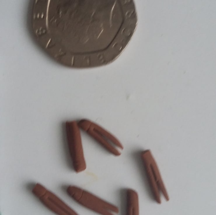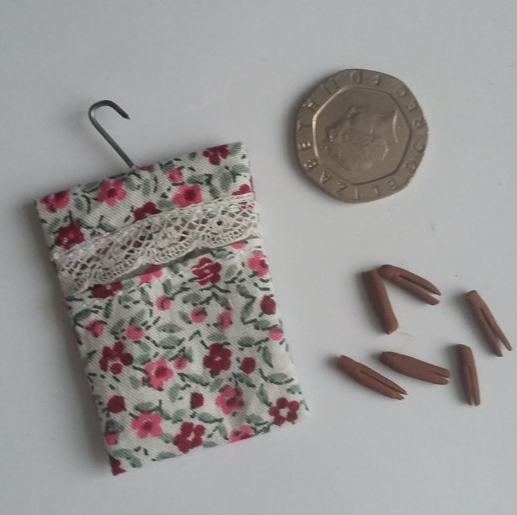 A 1.12TH FABRIC PEGBAG WITH PEGS MADE FROM POLYMER CLAY