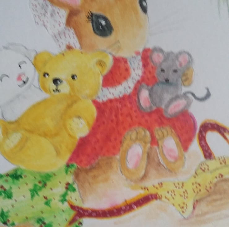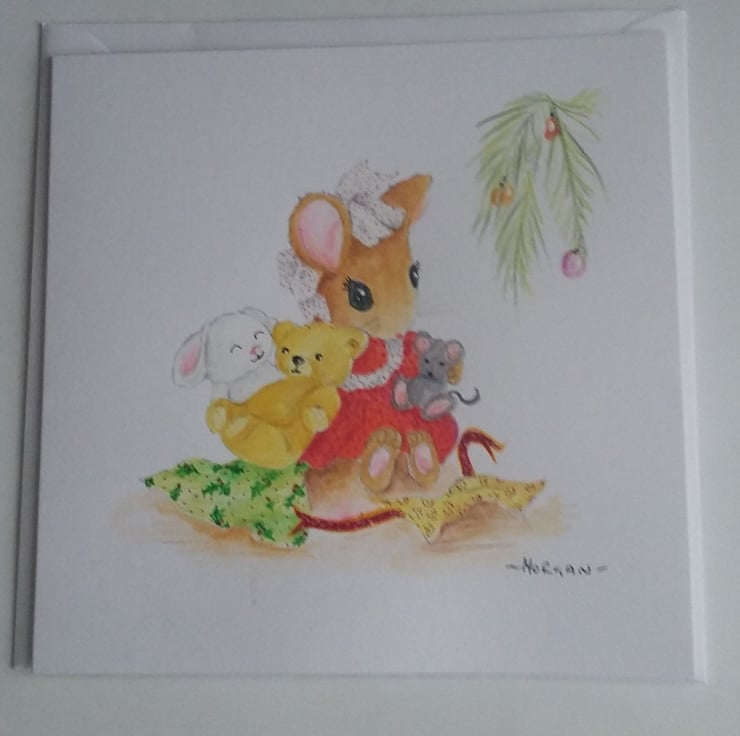 6x 6" 250 gsm white blank card with an original hand painting of A mouse