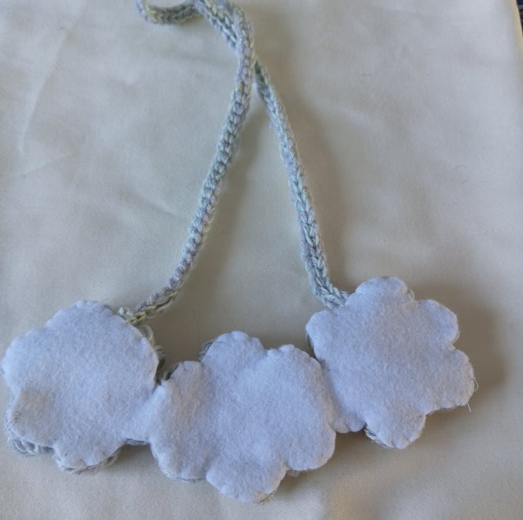 This is very comfortable to wear as it has a soft felt backing. There's no struggling with clasps as it fits over the head.