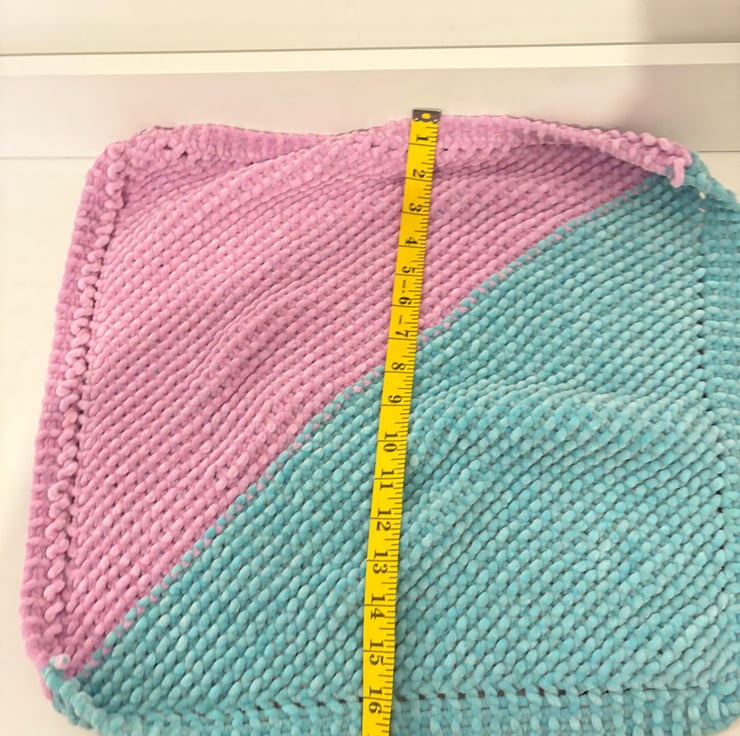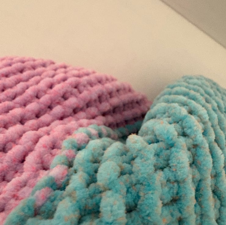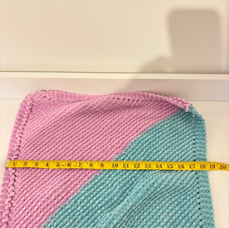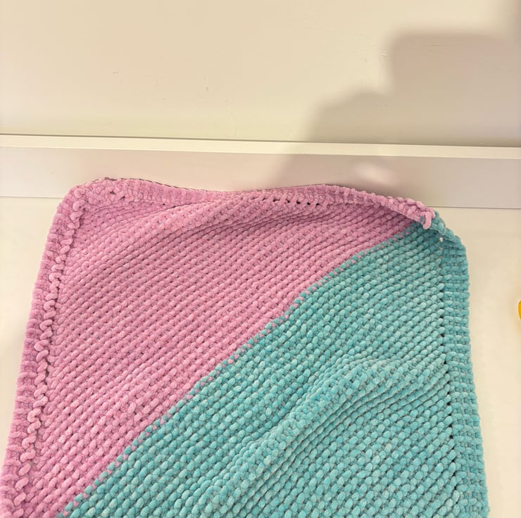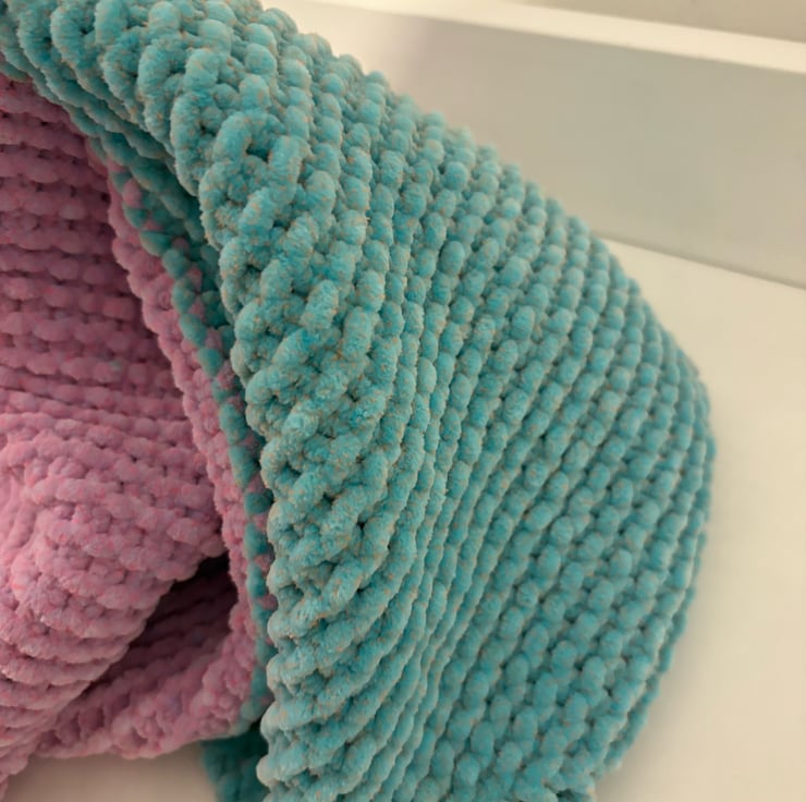 Hand knit baby blanket or car seat blanket. Super super soft chenille feel blanket.