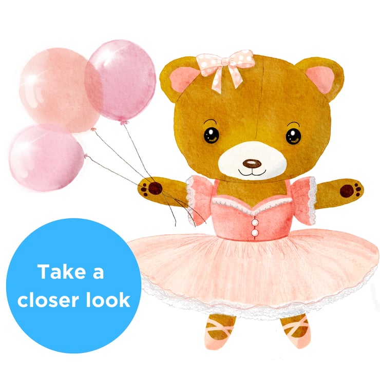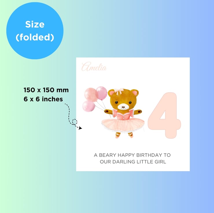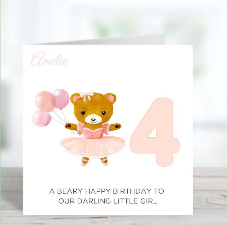Looking for a cute birthday card for the little girl you love? This adorable teddy bear, in pink ballet dress and shoes, will delight and enchant the birthday girl transporting her to a magical world where teddy bears dance.