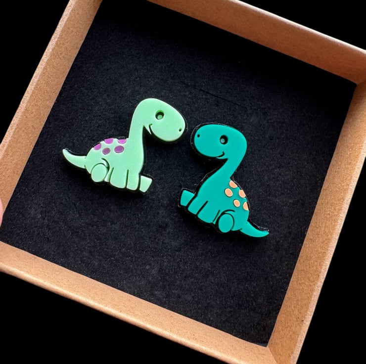 Laser Cut cute Baby Dino Studs, custom made with love and determination.