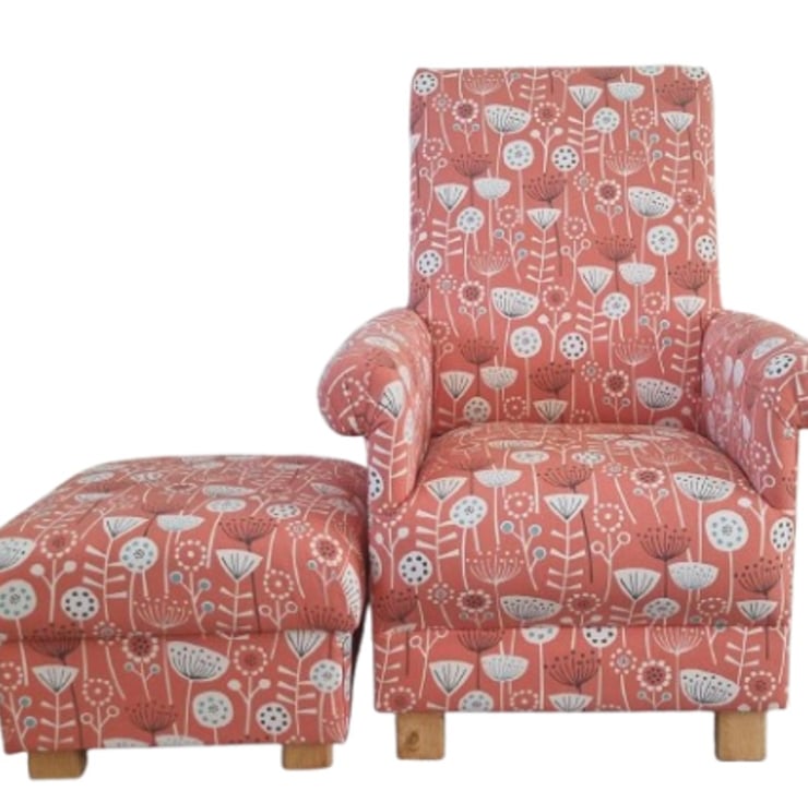 Fryetts Bergen Burnt Orange Floral Fabric Chair & Footstool Adult Armchair