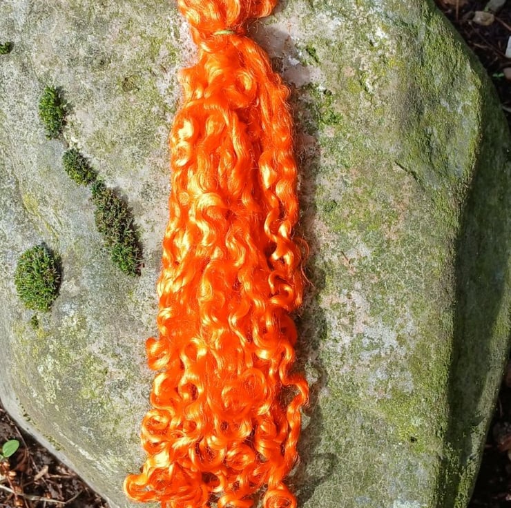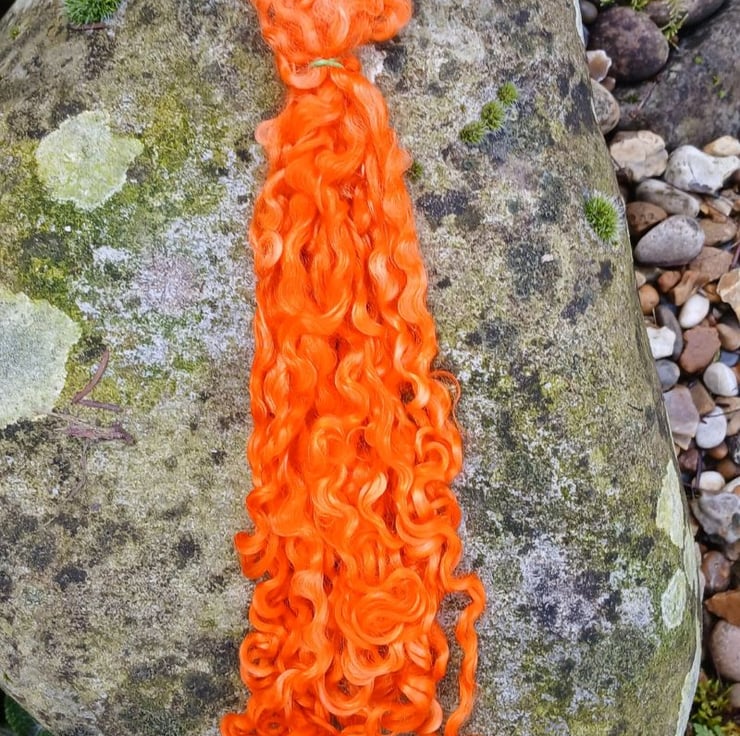 Hand washed, hand dyed Wensleydale fleece in hand sorted into individual locks of 10g bundles.
