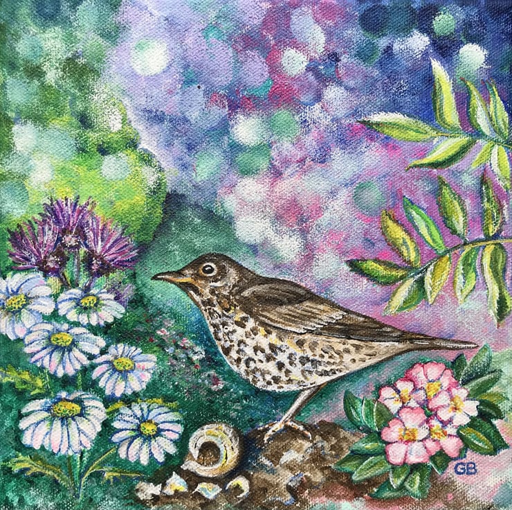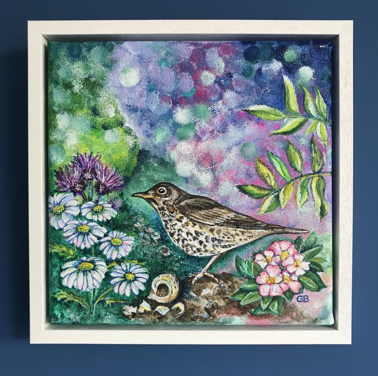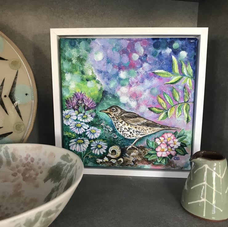 Thrush Painting, Original Painting, Garden Painting, Small Painting, Nature.