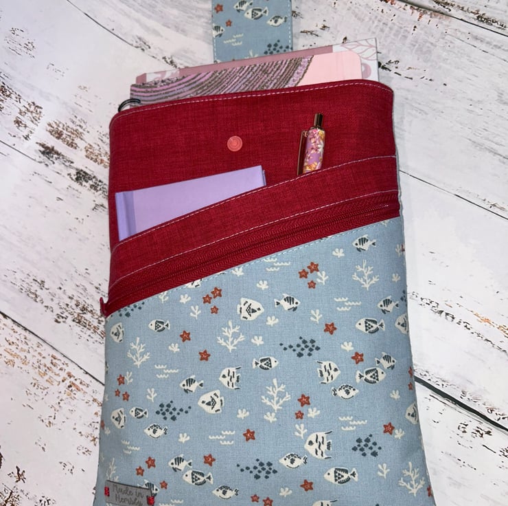 The Under the Sea themed fabric details ditsy fish whilst the contrasting red fabric highlights the tiny starfish.