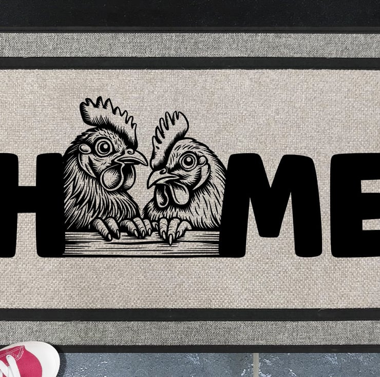 Chicken & Rooster Home Door Mat No.1 - All Weather Doormat - 45x70cm