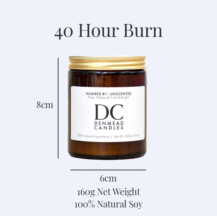 A luxurious, unscented, 100% natural candle for perfect candlelight without any fragrance or nasty chemicals, made especially for our customers who are sensitive to scents. Enjoy that candlelit glow without the headache.