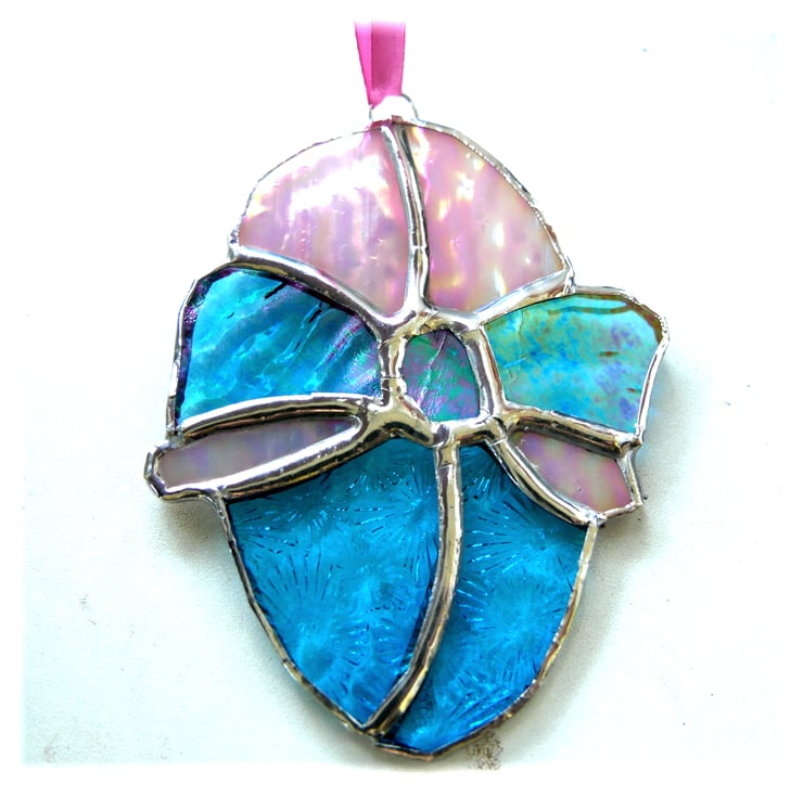 This is a stained glass suncatcher handmade using the Tiffany copper foil technique.