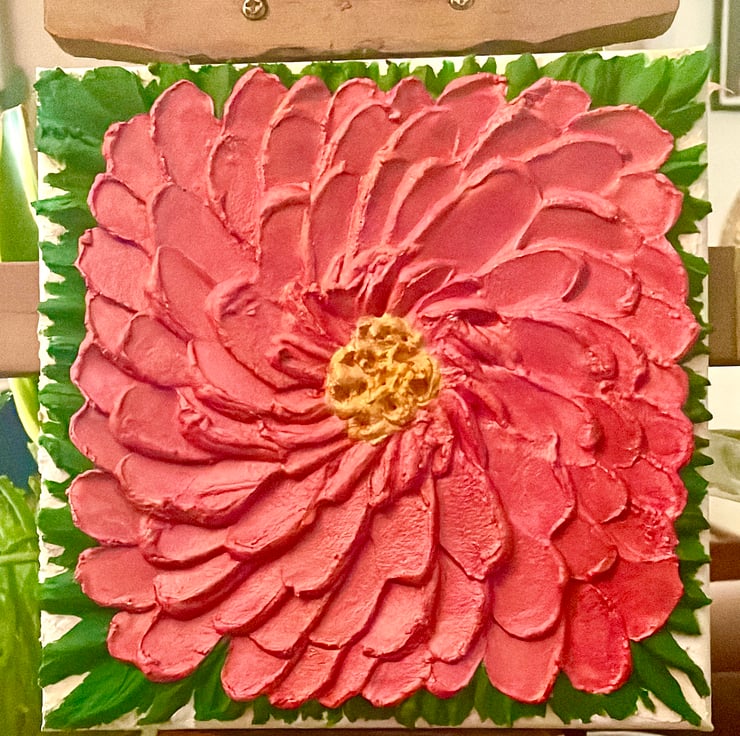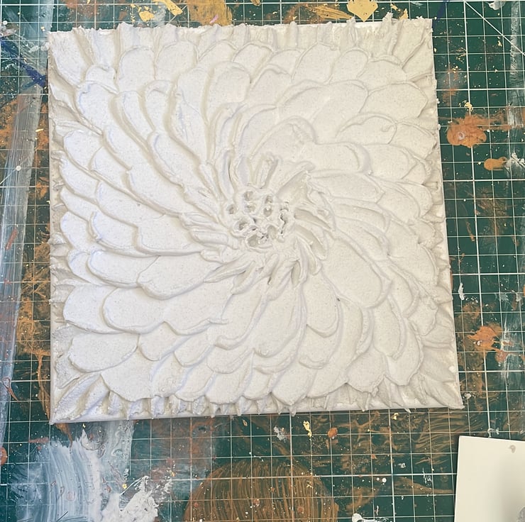 I started working with the moulding paste, and went with the flow and the inspiration evolved into a flower.