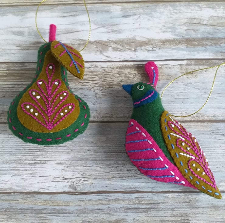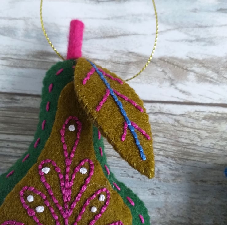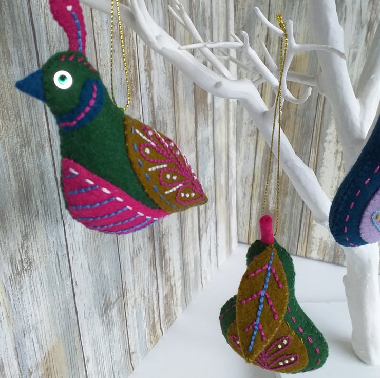 The ornaments are made with 100% wool felt and decorated with hand embroidery.