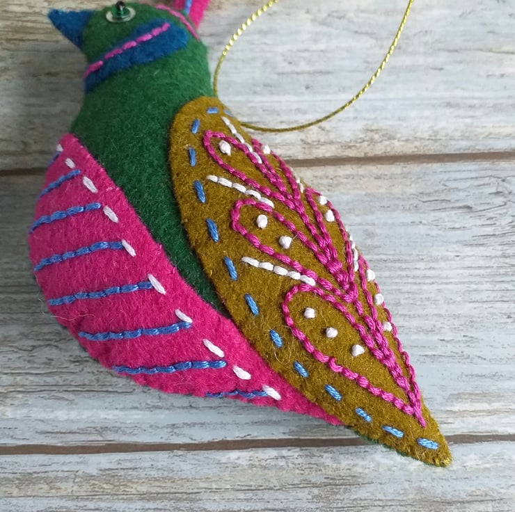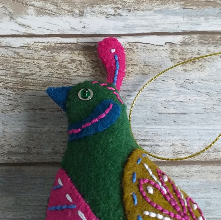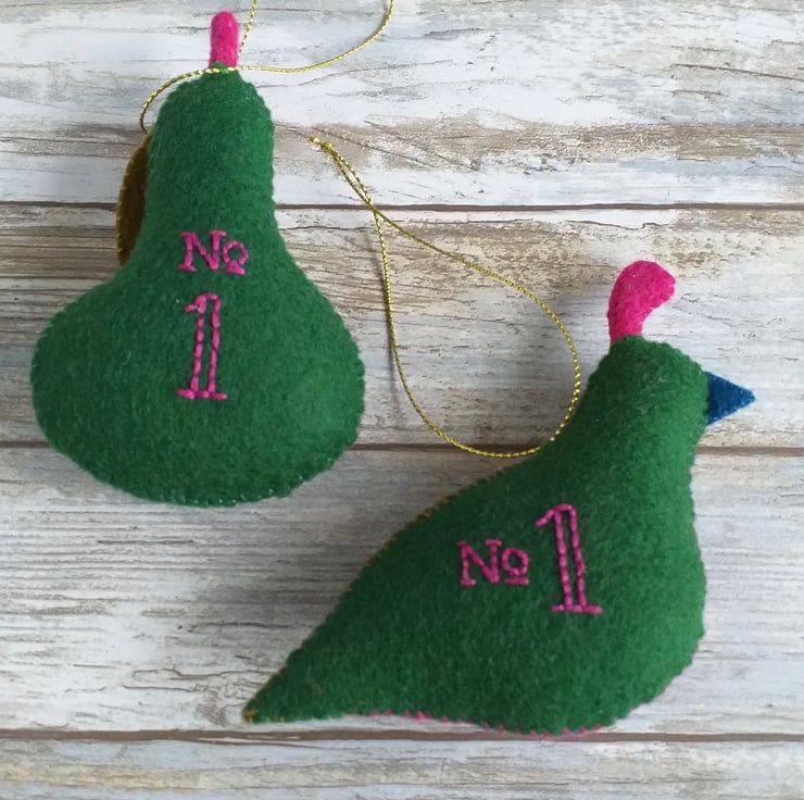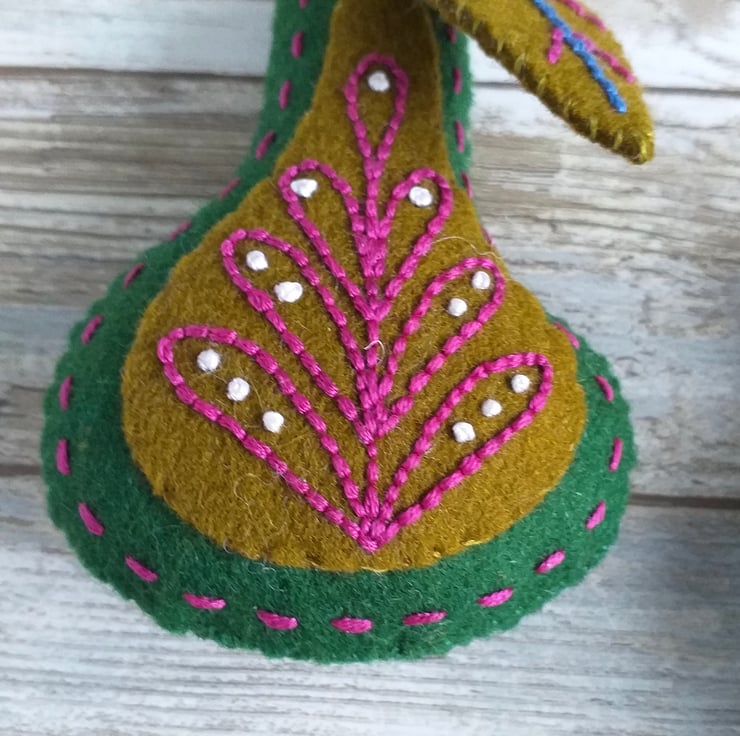 This wool felt Ornament is made from the pattern by Larissa Holland of mmmcrafts from her ‘Twelve Days’ Ornament series