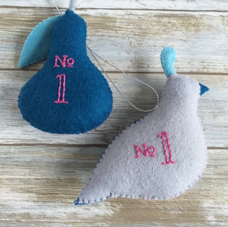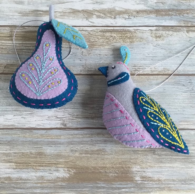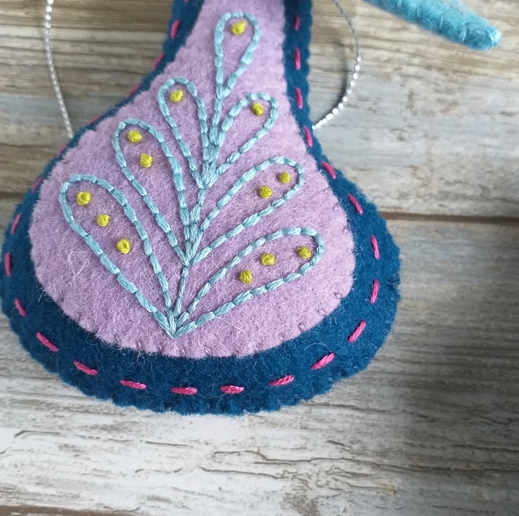 The ornaments are made with 100% wool felt and decorated with hand embroidery.
