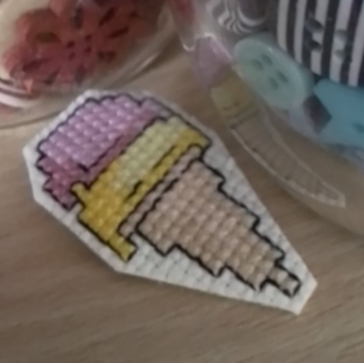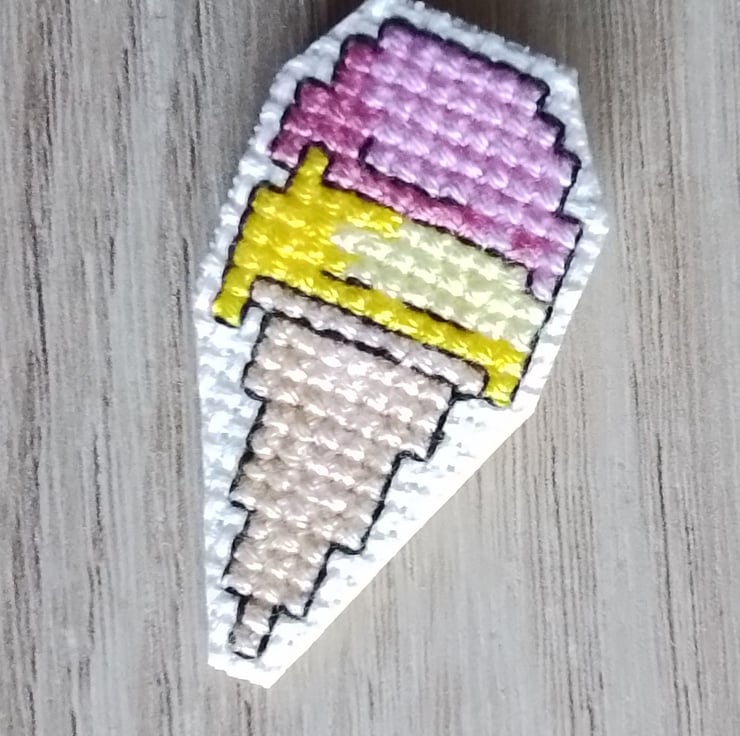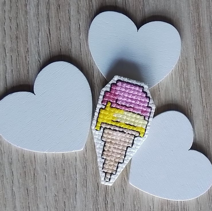 This is a hand stitched pin badge/brooch of an ice cream.