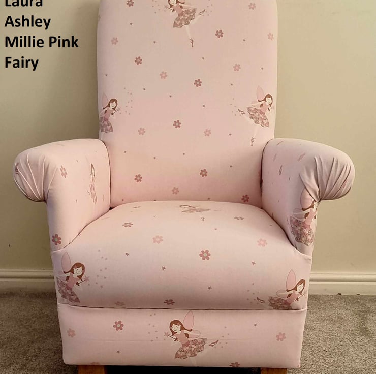 This is a sturdy, handcrafted childrens chair, which has been made by myself, a professional upholsterer with over 32 years experience, using Laura Ashley Millie Fairy fabric.