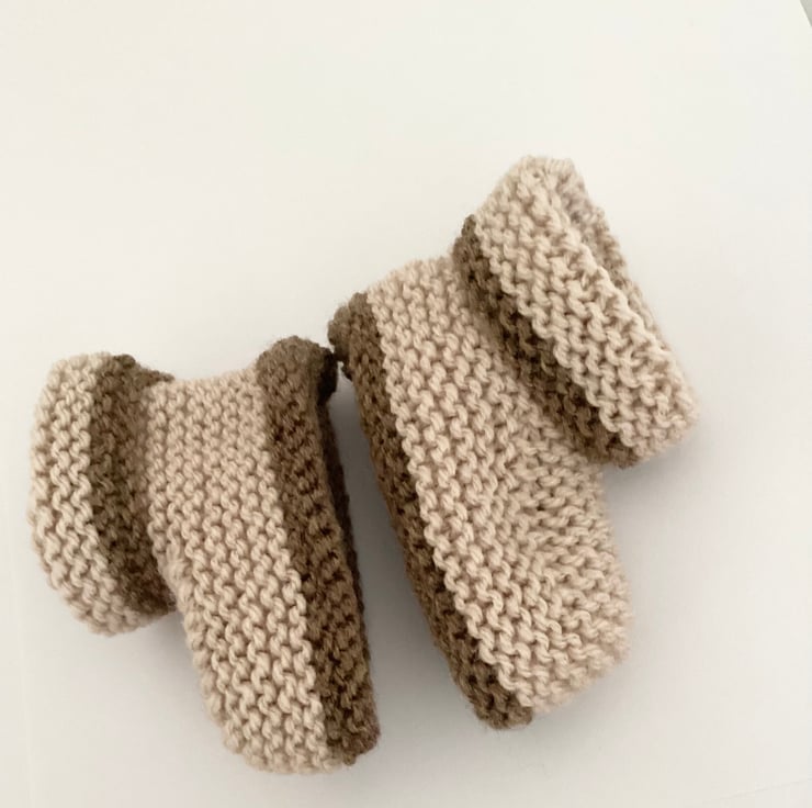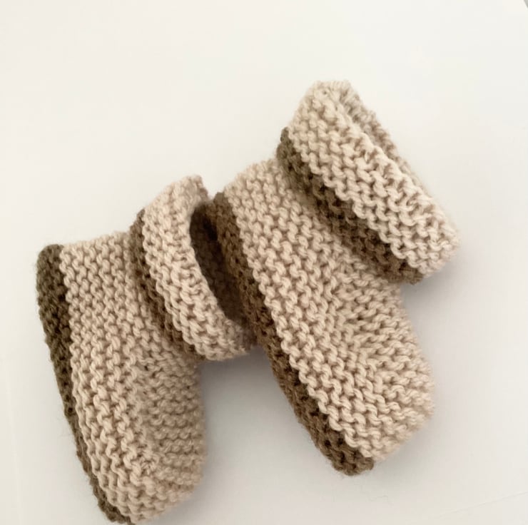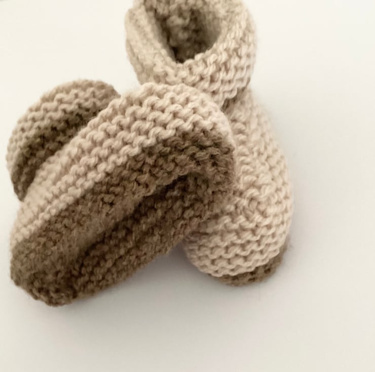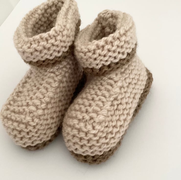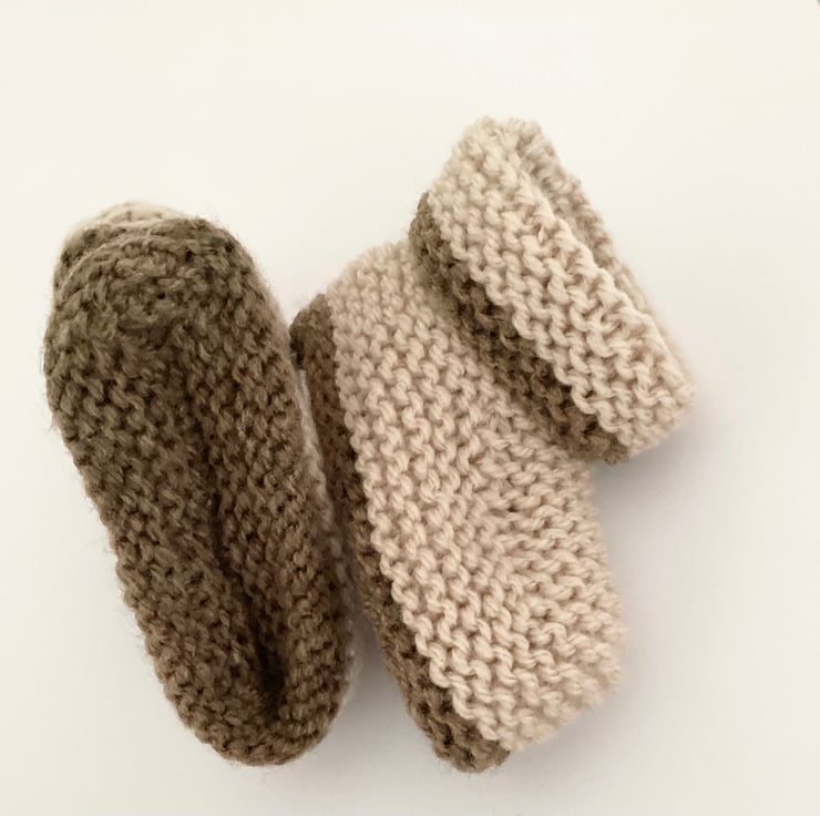 Hand knitted baby booties with folded over cuffs to keep little feet warm