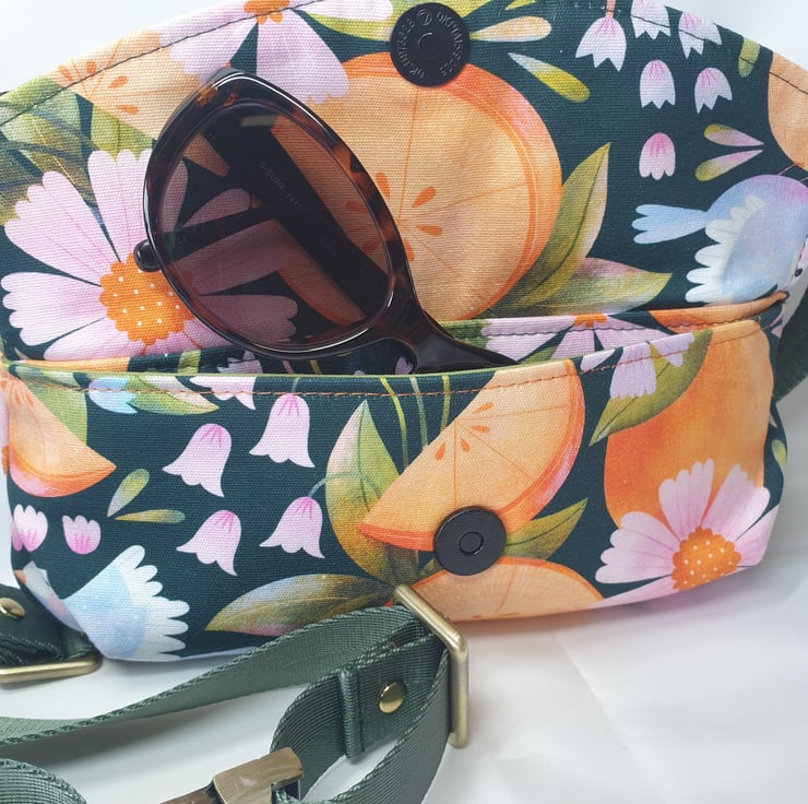 Functional and stylish waist bag /bum bag / hip bag (you know what I mean!). This roomy bag, in water resistant canvas and cork in a cute design has lots of storage detail. The outside features a handy pouch with a cork flap and closes with a magnetic snap. It also has an outer zip pocket and inside, you will find slots for 6 credit cards and another zip pocket in waterproof cotton. The top of the bag is secured with yet another zip. The adjustable 25mm (1") webbing strap enables you to wear it around your waist or across your chest and has a side release buckle - all hardware is brushed brass.