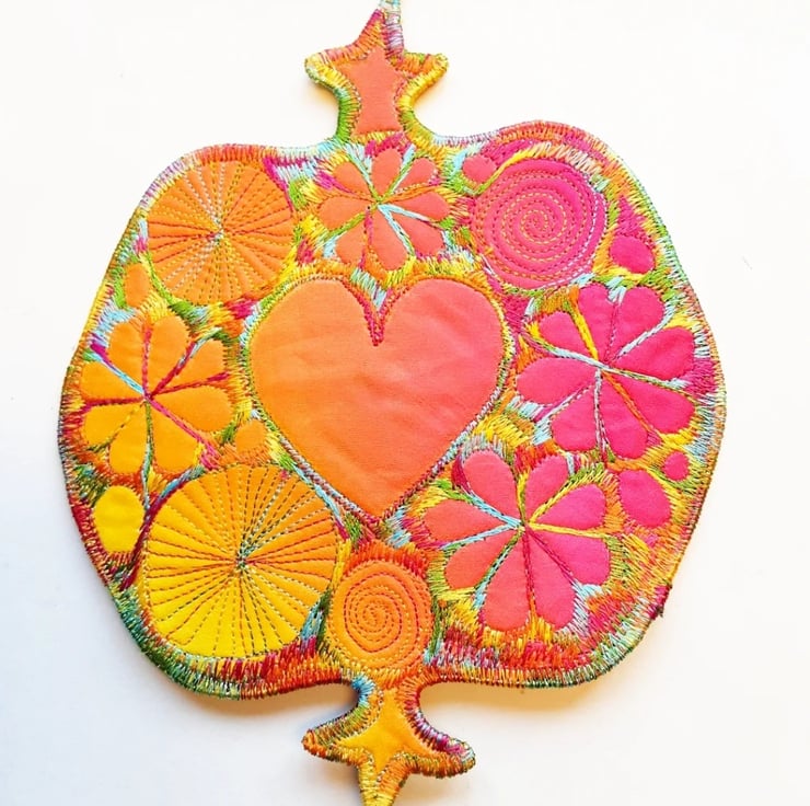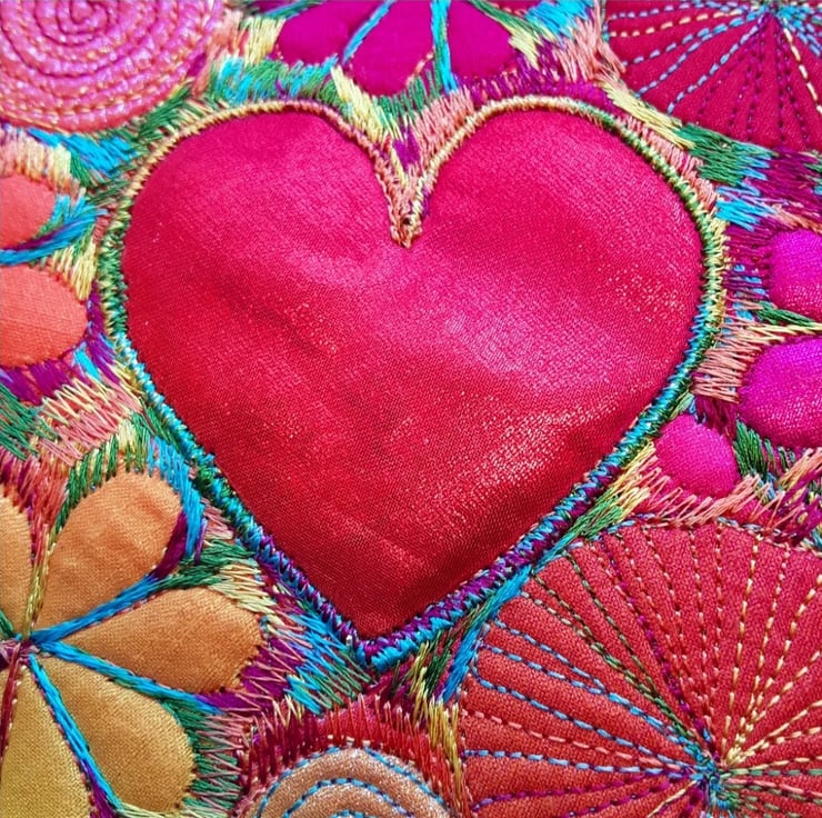 Made from hand dyed Egyptian cotton and silks and sewn using the free machine embroidery technique,.