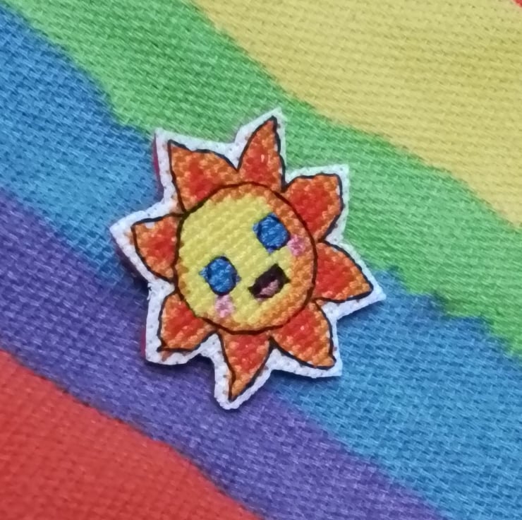 This bright, smiling sun is a great pin badge for brightening up anyone’s day!