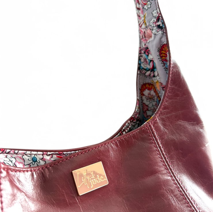 Style it casually with jeans and a chunky cardigan, or pair it with a flowy dress and ankle boots for a polished look. The rich burgundy leather and gold hardware make Estrella a timeless piece for any outfit.