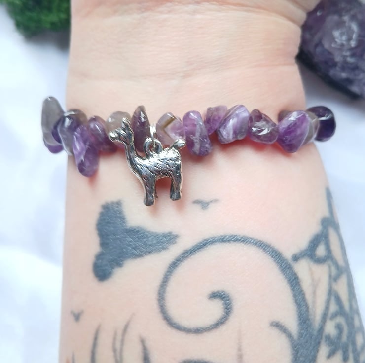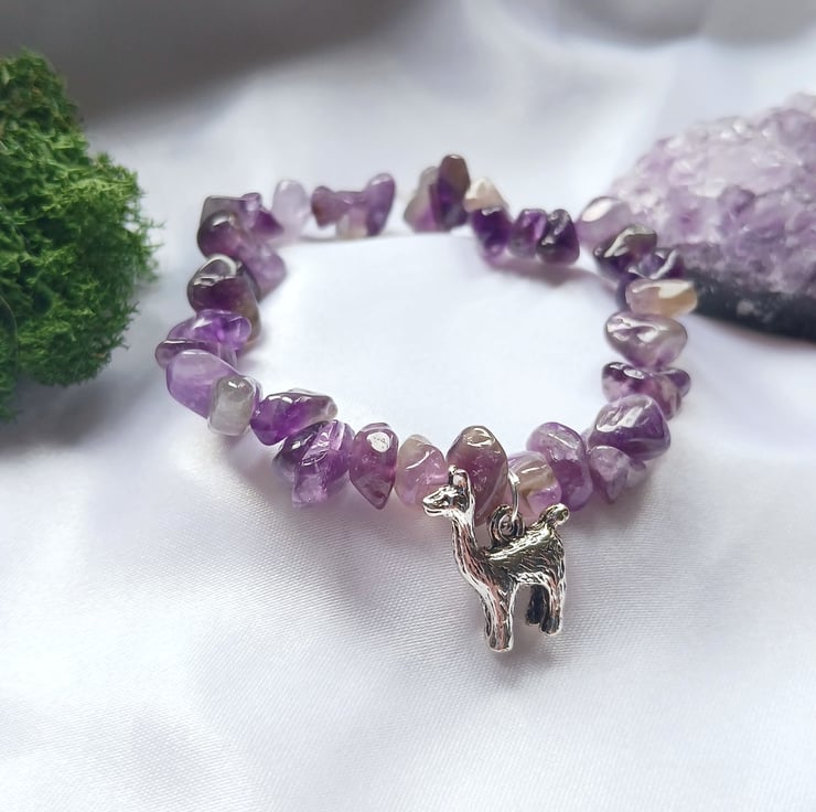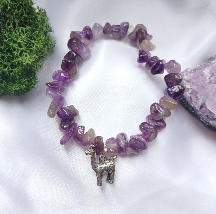 Handmade Amethyst Bracelet with Llama Charm – 20cm