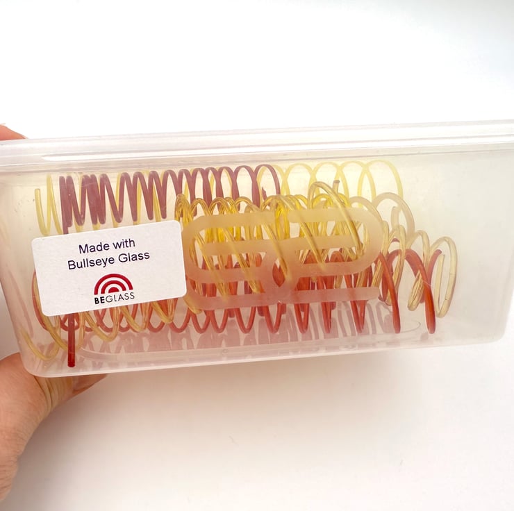 Handmade in the UK using 100% Bullseye glass using the Vitrigraph process to create a collection of coiled strings of glass.