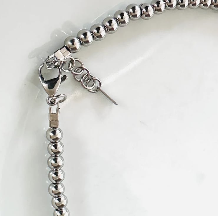 This necklace is made with 6mm bead ball stainless steel.