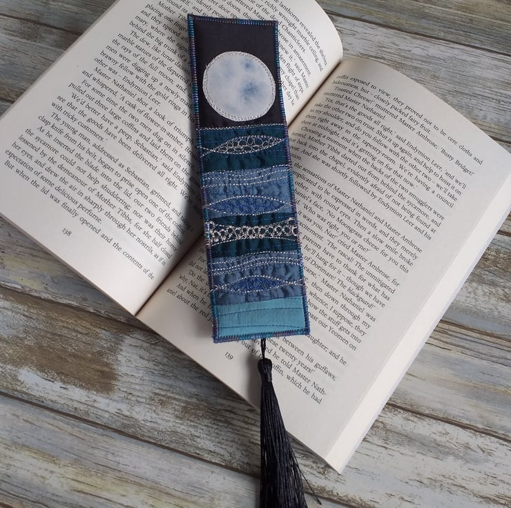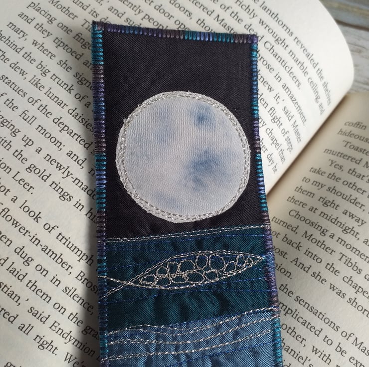 Embroidered Silk Bookmark, Moonlit Seascape Bookmark