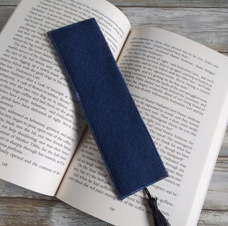 The bookmark is backed with wool felt and the firm interfacing inside gives it structure.