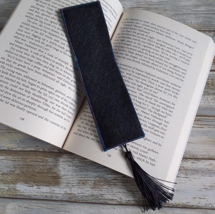The bookmark is backed with wool felt and the firm interfacing inside gives it structure.