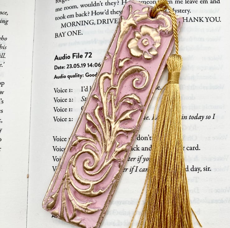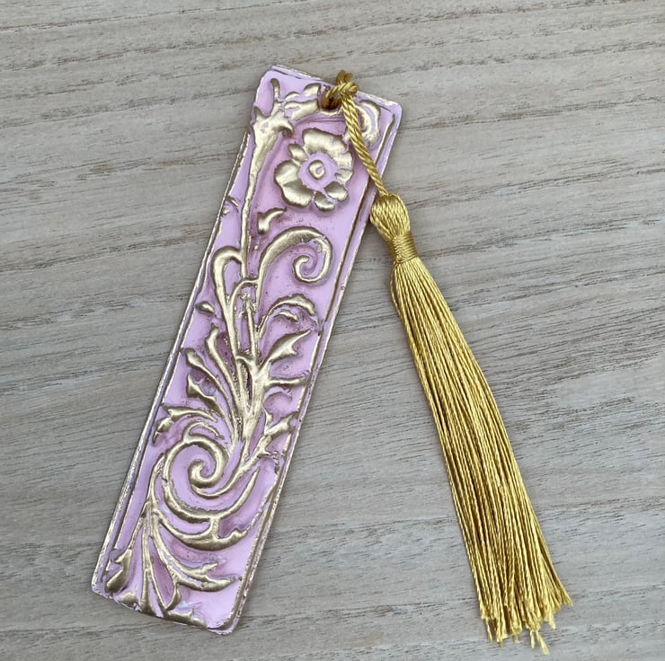 Handmade Architectural Moulding Bookmark With Tassel in Pink & Gold