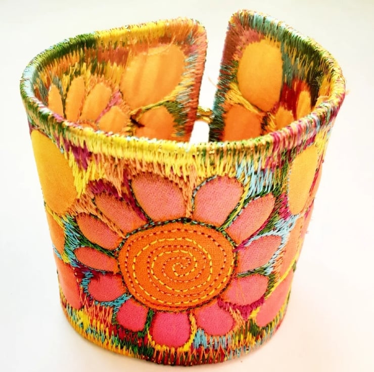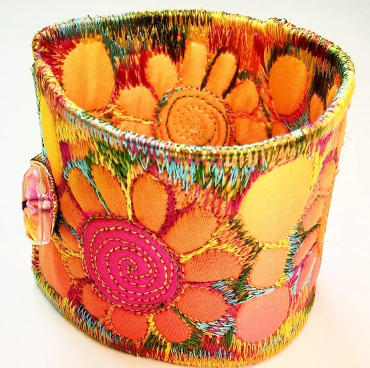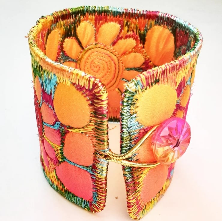 This is a handmade machine stitched fabric Stiched Silk Cuff or bracelet.