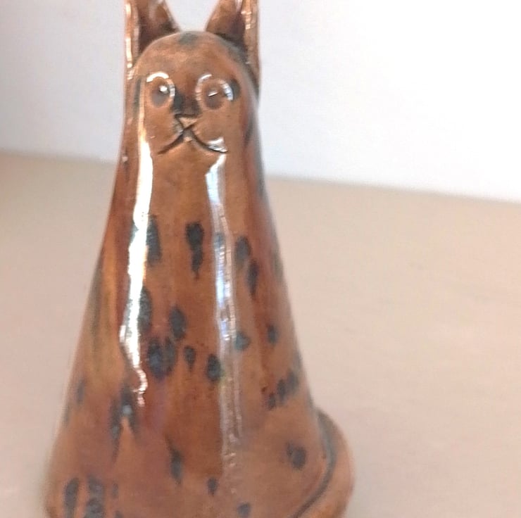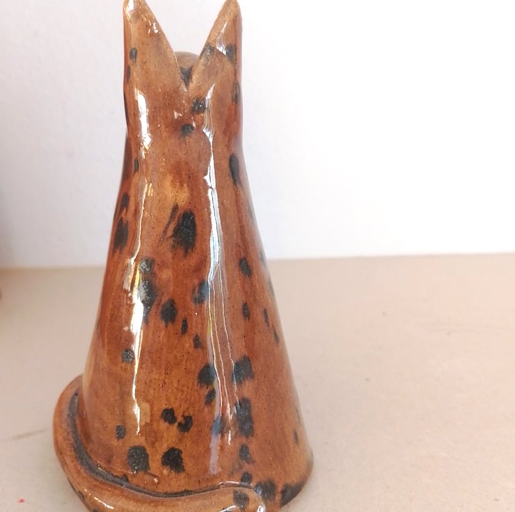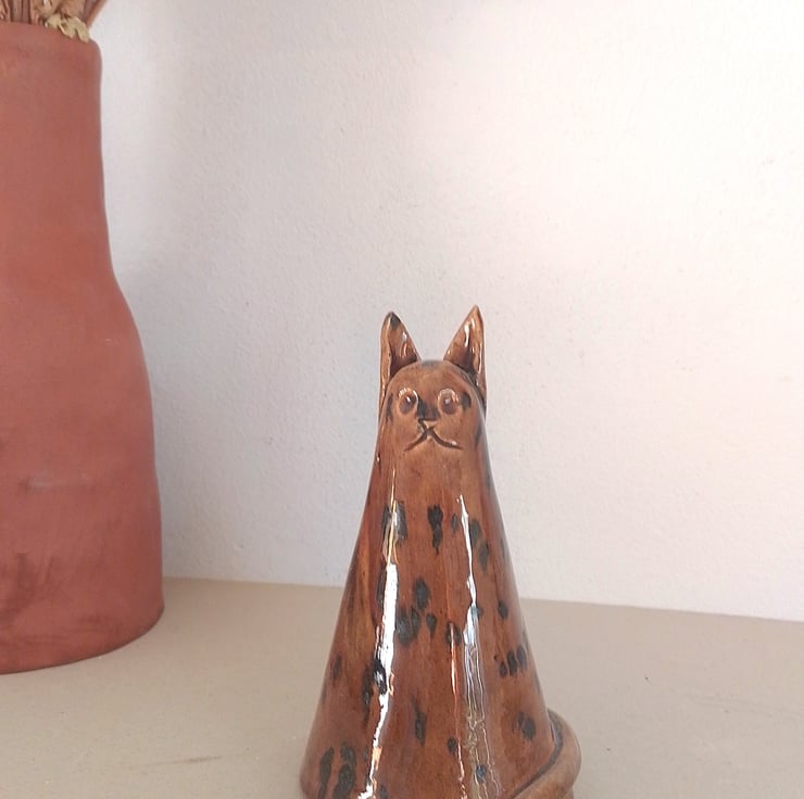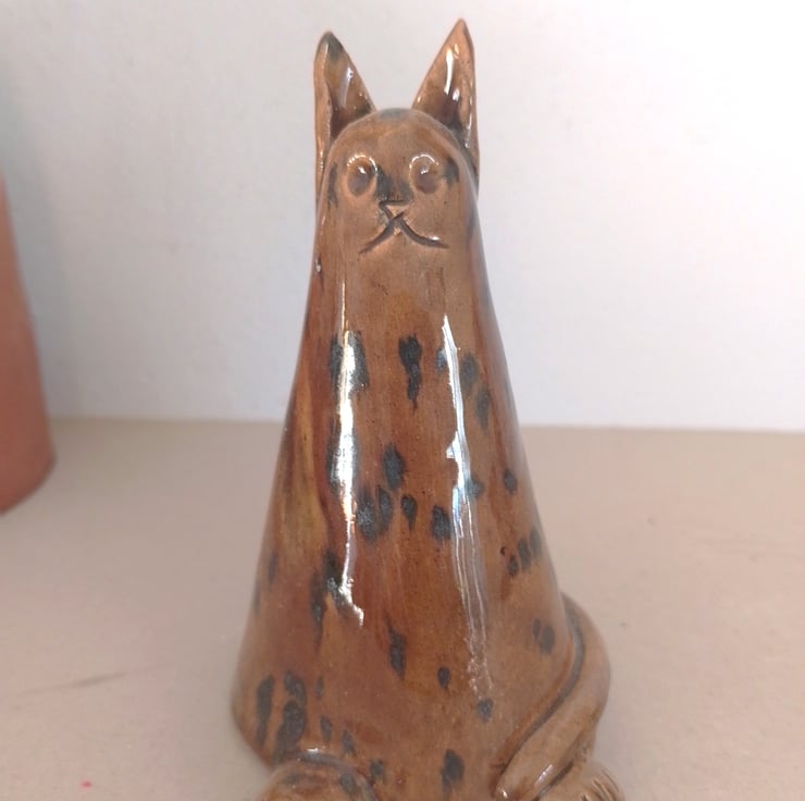 Originally this Cat ornament was made due to Cats. I wanted to make this one trying a smaller conical shape and use the gorgeous high glossy brown and black spotted glaze.