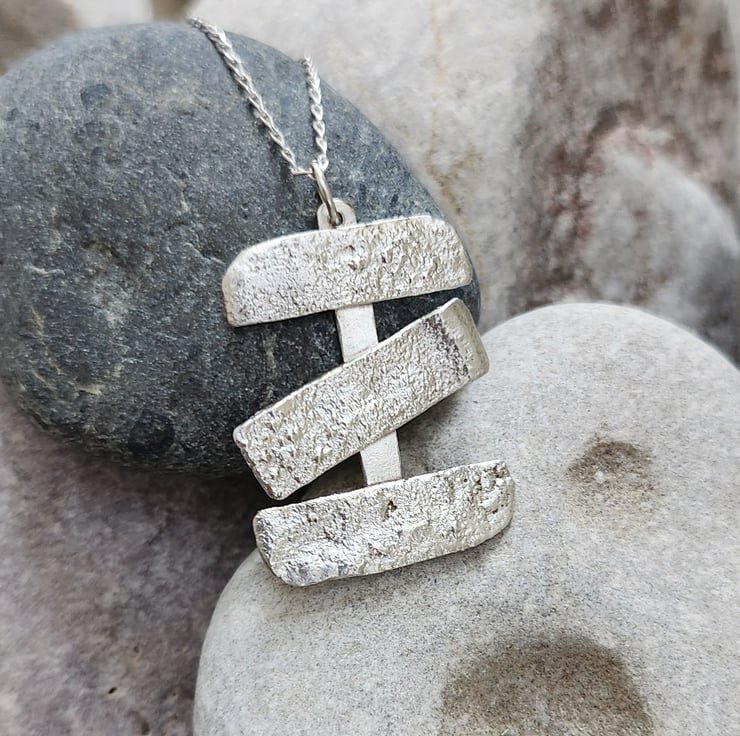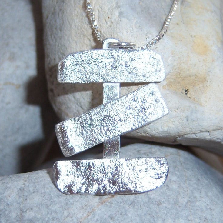 A sterling silver triple cross (no religious significance that I know of, just my design), made by a process called Reticulation.