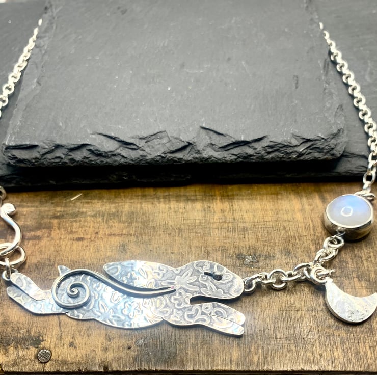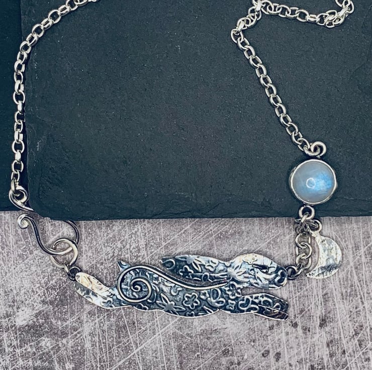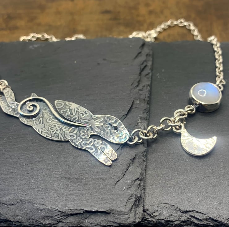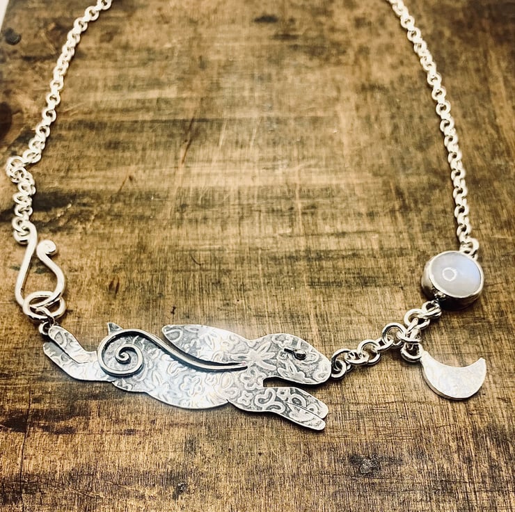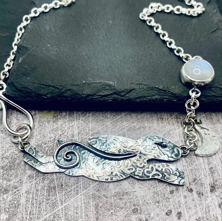 Chasing the Moon, Hare & Moonstone Sterling Silver Necklace